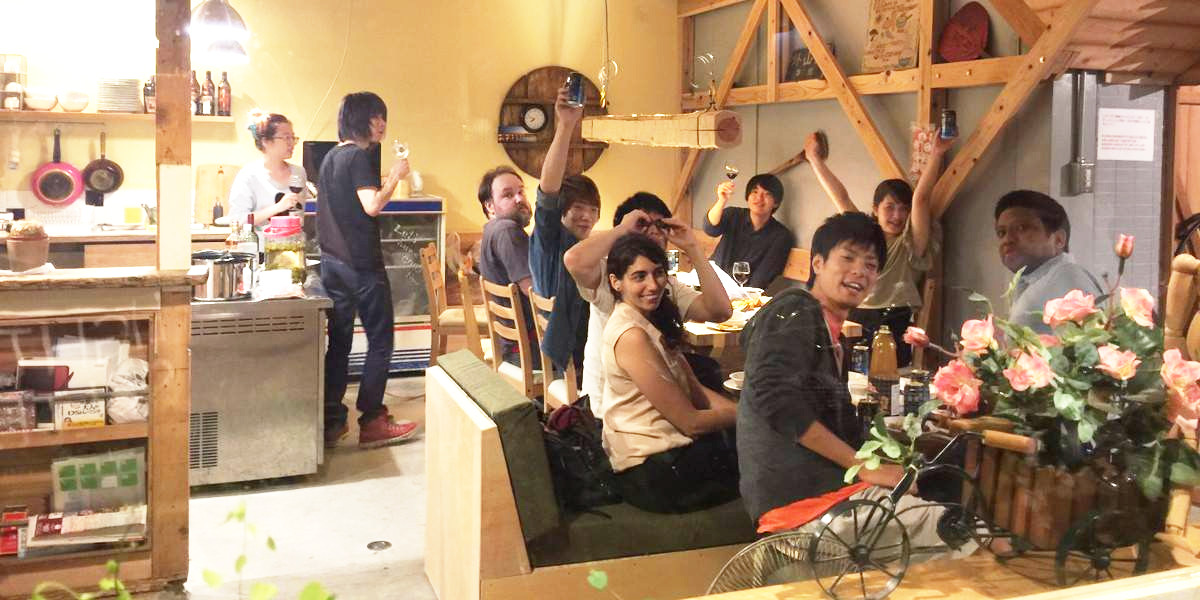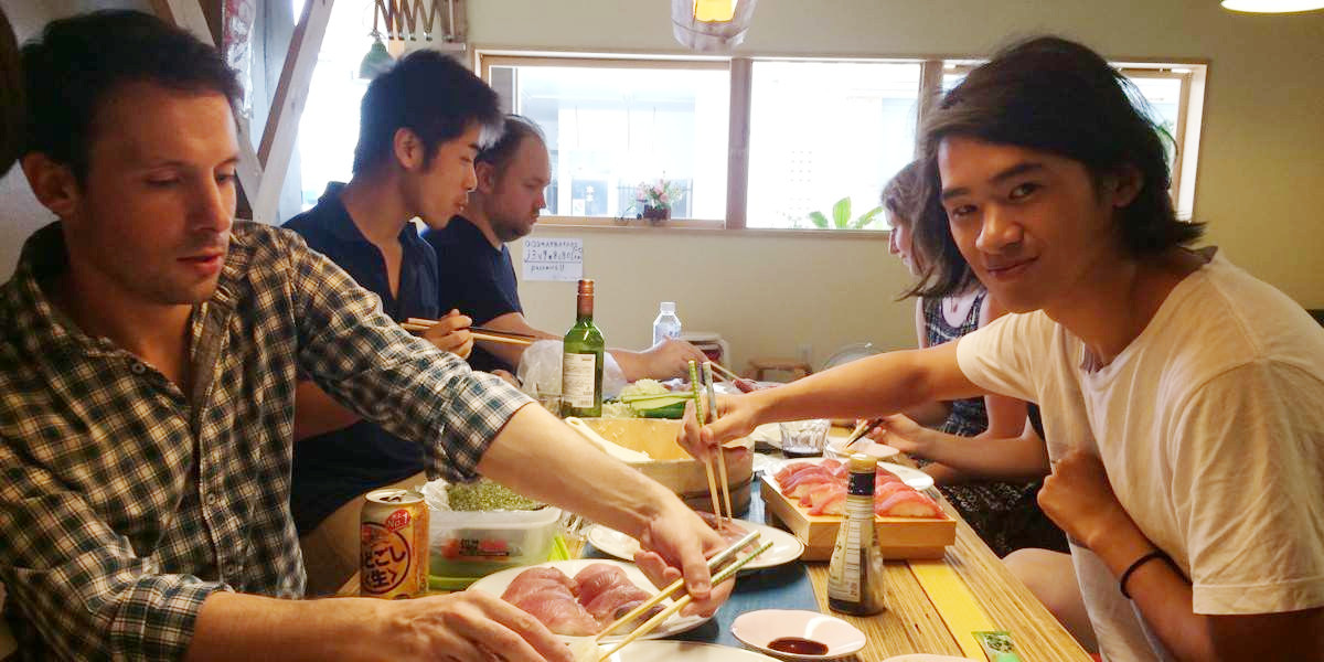 Creating a public space in which people can gather comfortably in a vibrant atmosphere has been our main focus during the renovation process. This house boasts a fully equipped kitchen with food preparation tables large enough for everyone to make dinner together. Hidden inside of our large dining tables are equally large Japanese-style griddles ? the same kind used in an okonomiyaki restaurant! With these griddles, it is possible to gather everyone around the table and host a true Osakan house party! You can spend time talking with your friends on our comfortable couches while eating the food you’ve made together.